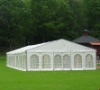 Event Tent / Party Tentseries are available in clear-span width of3m,4m,5m,6m,8m,9m ,10m,12m,15mand 10m all with a standard side height 2.6m. Party Tents are modular by design and may be extended or decreased in 3m section. The main frameworks (legs and roof beam)are manufactured in 2 channels 82x46.5x3mm or 4 channel 100x82x3mm hard pressed extruded Aluminium(A16N01) .The sidewalls and roof covers are manufactured of 850g/m2 PVC-coated polyester textile flame retardant to DIN4102 B1,M2.The fabric are available in blockout or transparent. Party tent series are available with a complete range of accessories including sidewalls with clear windows, ground anchors,weight plate, lining ,glass wall system, door units,ABS walling system,full clear covers& sidewalls, flooring system, rain gutters system, hexagonal & octagonal end bays and high peak roof conversions. Party tent series with professional design could be wind loading 80km/hour(0.3kn/m2).They are durable and safe. All the tents are easy to install and dismantle and store.They are widely used for outdoor temporary exhibition, celebration,wedding party, outdoor business promotion,sports event,temporary warehouse and workshop and emergent aid room